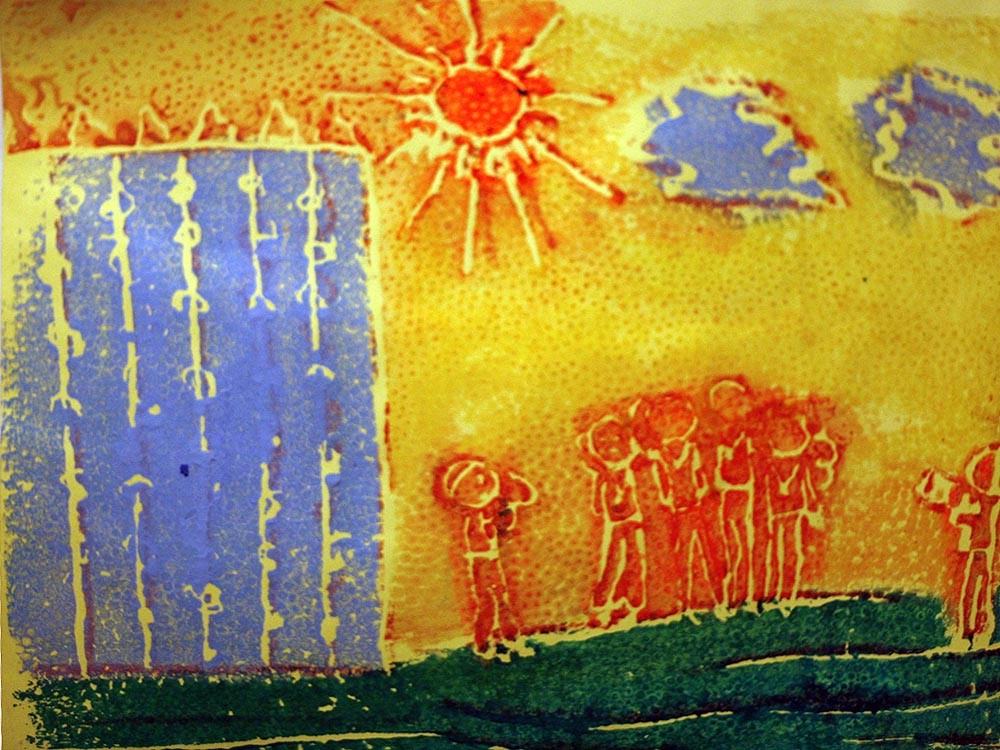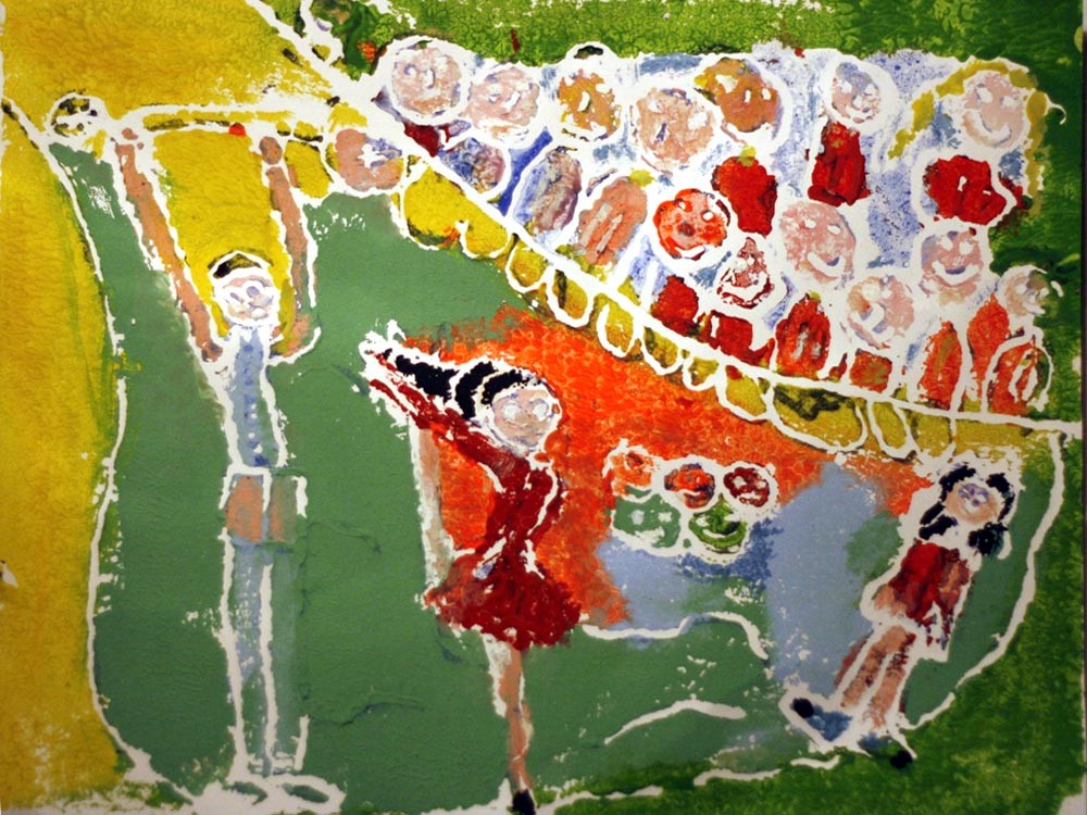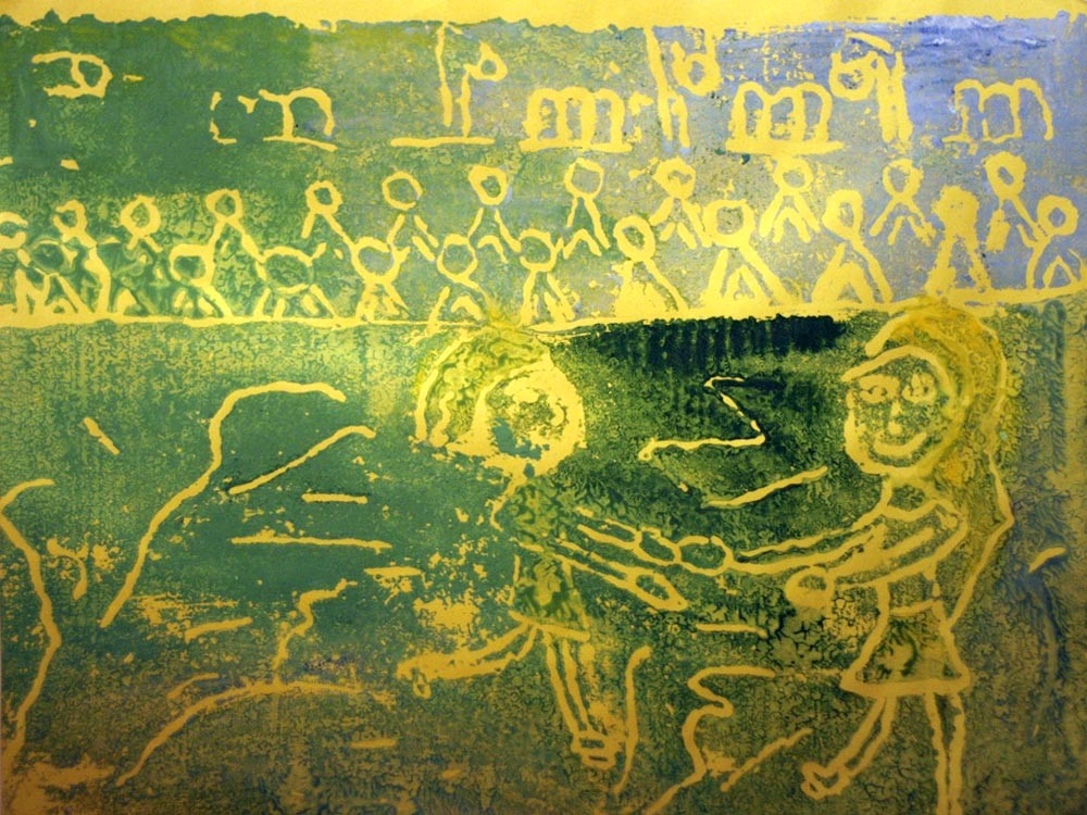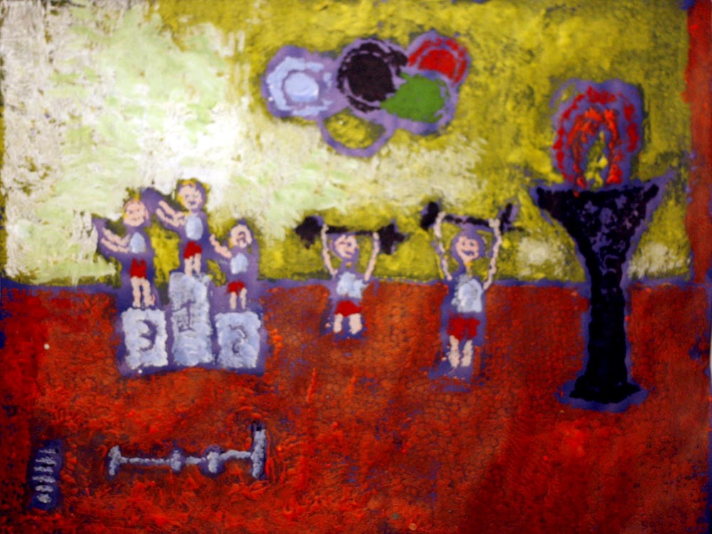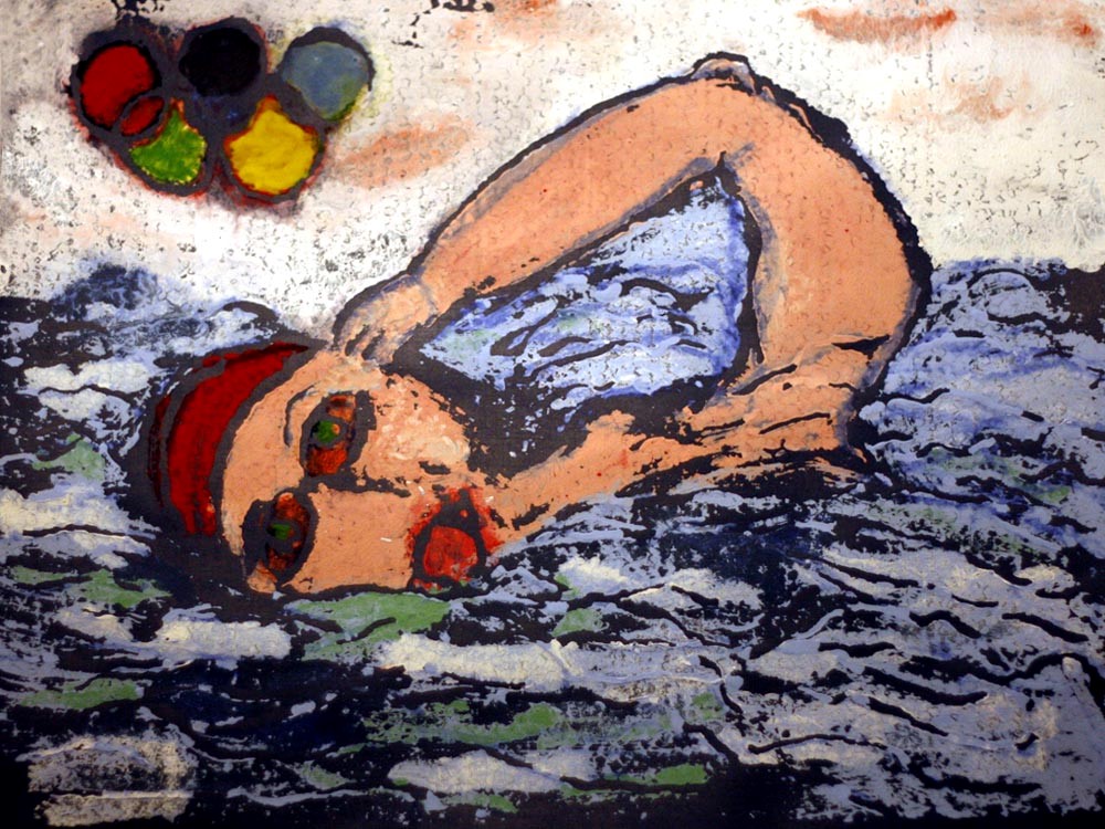 Genç insanlar için Olimpiyatlar’ın ilk olarak nerede, ne şekilde yapıldığını öğrenmek ilginç olmuştu. Hangi spor dallarının olimpiyatlarda yer aldığını elbette çalışmalara başlamadan önce sıraladık, gerçek atletlerin fotoğraflarını bulup arşivledik ve çıkışlar aldık. Böylece kimleri canlandırmak istediklerine bir çok seçeneği inceleyip ondan sonra karar vereceklerdi. Çalışma yöntemi olarak ise kızıyla birlikte baskıyı seçmişlerdi. Belki biraz zahmetliydi ama çok çarpıcı sonuçlar alınması olasıydı, ki öyle de oldu. Ülkeyi temsilen resim yapılacağına biraz havalı sonuçlar alınması çok yerinde olmuştu.