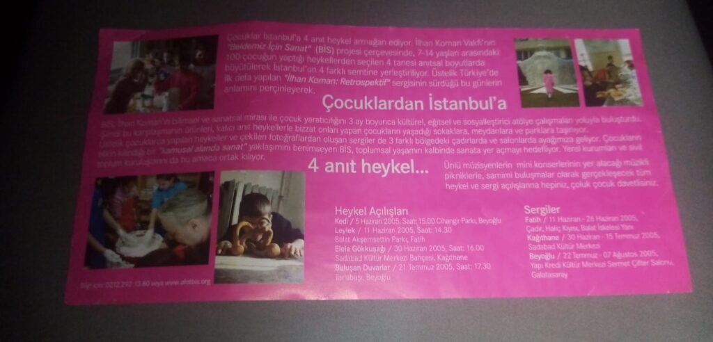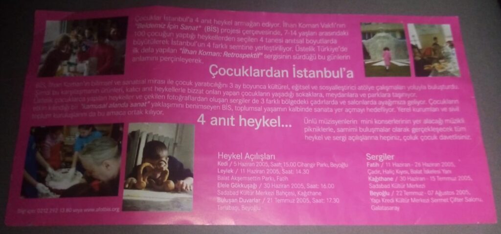İlhan Koman Vakfının BİS projesiyle 100 çocuk üç ay heykel eğitimi aldı; çocukların yaptığı dört heykel büyütüldü. Daha önce biri Cihangire biri Balata konulan heykellerin üçüncüsü bugün Kağıthaneye yerleştiriliyor.